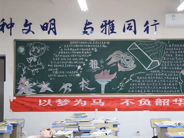 為貫徹《學校體育工作條例》,弘揚體育精神,活躍學校體育文化生活,增進學生、教職工身心健康,更好地展現(xiàn)恒雅師生的“精氣神”,學校舉辦了“運動 健康 文明 快樂”為主題的第三屆校園體育節(jié)。在校辦公室、教務(wù)處、學生處、團委精心策劃下,開展了以運動會為主題的黑板報評比活動,一時間仿佛運動會賽場上的一幕幕展現(xiàn)在了各班的板報上,活靈活現(xiàn)。各班同學充分發(fā)揮創(chuàng)造才能,密切配合,創(chuàng)作出了一幅幅繪畫精美、內(nèi)容充實的黑板報,令人大飽眼福!